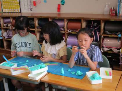 外国語活動や図画工作の授業では友達にインタビューしたり、話したりしながら楽しんで取り組んでいました。