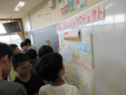 6年生は総合的な学習の時間で創校150周年に関する活動を進めています。今日は、記念グッズの案や屋台・出し物の企画を考えました。