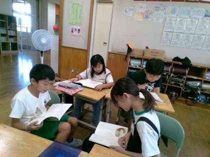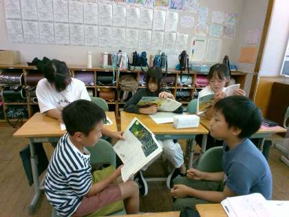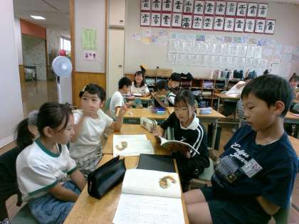 担任のあとに続いて音読したあと、班の友達で音読しました。家庭でもたくさん音読していってほしいと思います。