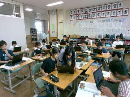 道徳の学習で、タイトルの資料を読み、自分たちの町のとっておきをスライドにまとめました。そしてスライドにコメントをし合いました。
