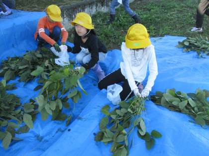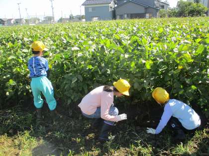 6月に植えた枝豆の収穫に行きました。6月よりも大きくなった枝豆に驚きながら、友達と楽しんで収穫していました。