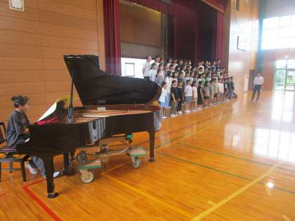 アリーナで練習しました。綺麗な歌声を響かせました。
