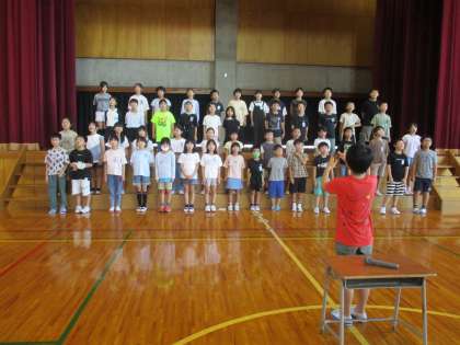 今日は初めてアリーナでの練習をしました。立ち位置も決まって、本番に向けてさらに頑張っていこうという気持ちを高めた子供たちでした。