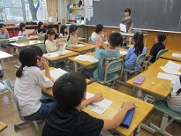 国語の授業では、どうぶつ園のじゅういを読み、獣医さんの仕事ですごいと思ったことやびっくりしたことを手紙に書きました。授業の最後には書いた手紙を友達に発表しました。