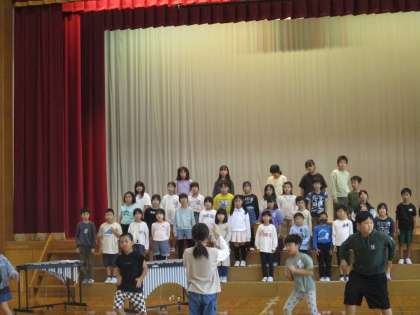 今週は振りを付け、セリフを工夫して言うことを目標に、アリーナでの練習を行っています。