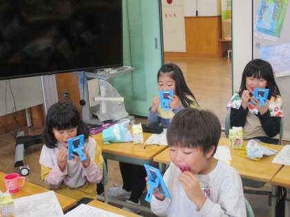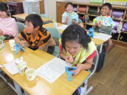 染め出し剤を使って、歯の磨き残しをチェックしました。自分の磨き残しの多さに驚き、その後丁寧に歯磨きを頑張る子供たちでした。