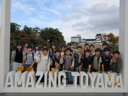 最後、富山城を背景に写真を撮りました。帰りのバスの中で子供たちは、買った物を見せ合ったり、思い出を伝え合ったりして、とても充実している様子でした。