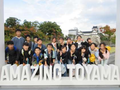 最後、富山城を背景に写真を撮りました。帰りのバスの中で子供たちは、買った物を見せ合ったり、思い出を伝え合ったりして、とても充実している様子でした。