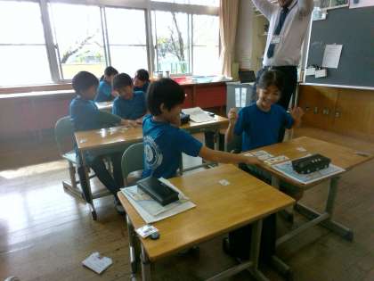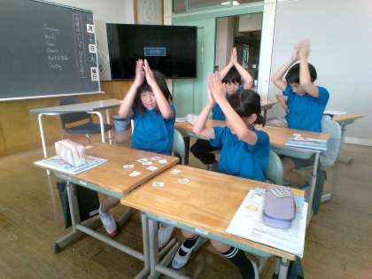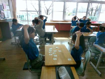 ポインティングゲームやカルタで文房具の言い方に慣れ親しみました。