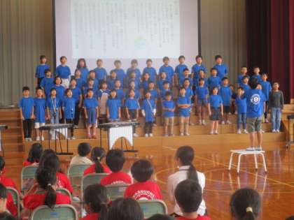 低学年と中学年でそれぞれのミュージックフェスティバルの発表を見合いました。最後にはお互いによかったところやアドバイスを伝え、一人一人頑張ろうという気持ちを高めた子供たちでした。