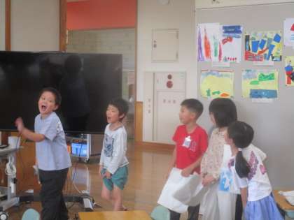 1年生はくじらぐもの学習を進めています。登場人物の気持ちや場面の様子を想像しながら、工夫して音読しています。くじらぐもと子供役に分かれて呼びかけ合いました。