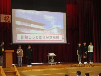 【10月26日】創校150周年式典「6年生:植樹体験の発表」