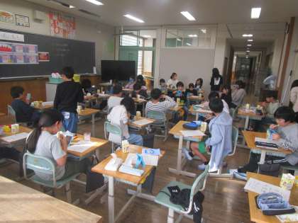 養護教諭から正しい歯磨きの方法について教えてもらいました。自分の歯を大切にしていこうとする気持ちを高める子供たちでした。