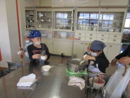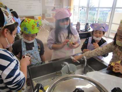 「甘い」「おいしい」とみんなで言いながら、たくさん食べていました。自分たちで世話をし、自分たちで掘り、調理したさつまいもなので、一際おいしく感じたようです。