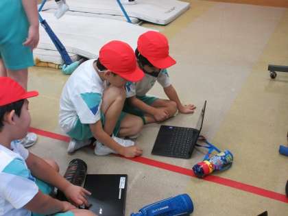 2年生は体育の時間、鉄棒運動に取り組んでいます。繰り返し練習したり、動画を見ながら技のポイントを確かめたりしながら、できる技を増やそうと励んでいます。