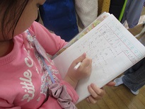 算数ではかけ算の学習がはじまりました。今日は、学校にあるものからかけ算で表せるものを探し、かけ算の式を作りました。ロッカーの数や窓ガラスの数など、様々な場所でかけ算を見つけることができました。