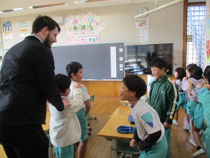 他にも、英語の歌を歌ったり、英語でじゃんけんをしてじゃんけん列車を楽しんだりするなど、ALTとの交流を思う存分楽しみました。