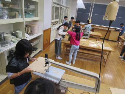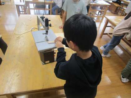電気糸のこぎりを用いて製作活動を行いました。安全に留意して課題を進める子供たちでした。