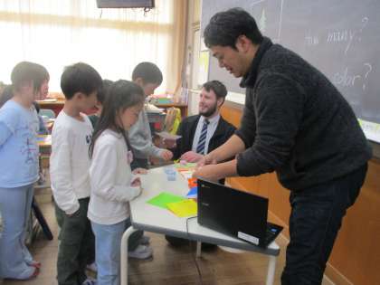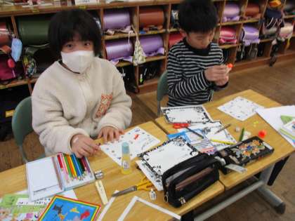 外国語の時間にオリジナルのクリスマスカードを作成しました。英語のやり取りの中で、相手がカードに書いて欲しい形等を聞き取って、かわいらしいカードを完成させました。