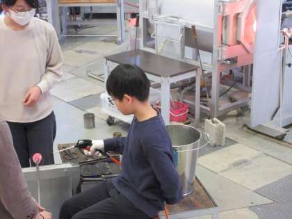 富山市ガラス工房でペーパーウエイトを作ってきました。見本を見ながら色やデザインを考え、一人ずつ慎重に作業に取り組みました。すてきな卒業制作に仕上がることを楽しみにしています。