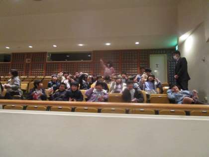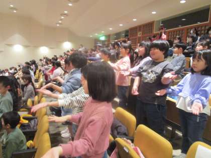 八尾高校の生徒さん主催の「ハートフルクリスマス」に参加しました。劇や吹奏楽の演奏、おわら、バルーンアート、ダンス等、盛りだくさんの楽しい発表を見せていただきました。吹奏楽演奏では、運動会で踊った「ドラえもん」の演奏があり、曲に合わせてみんなで踊って大盛り上がりでした。最後にはプレゼントまでもらい大喜びでした。