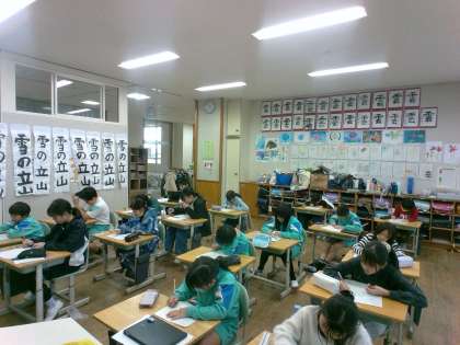 また、今日は計算チャレンジのチェックテストをしました。テストの結果から今日までの取組を振り返り、今後の学習に生かすことができればと思います。子供たちは集中して取り組んでいました。