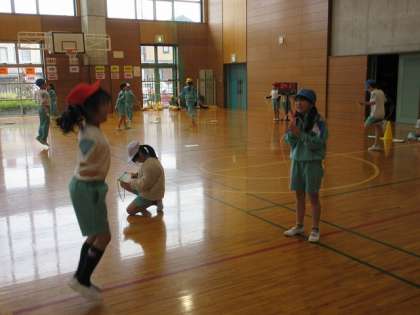 体育科の時間、2年生は縄跳び運動に励んでいます。友達と技を教え合ったり、跳んだ回数を数え合ったりしながら、できる技を増やせるようにがんばっています。