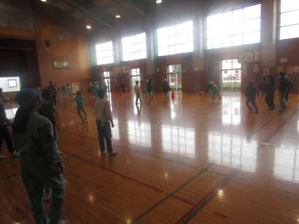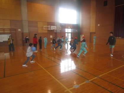 高学年でドッジボールを楽しみました。寒さを忘れるほど白熱した試合でした。