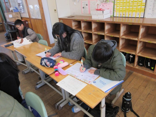 学びの庭では、算数の学習を教え合ったり、自習学習を真剣に進めたりしました。