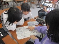 音楽の学習では、グループに分かれて「夕やけ こやけ」や「子ぎつね」の歌を練習しています。歌詞からどんな様子が思い浮かぶか考え、友達と一緒に歌の練習に取り組みました。