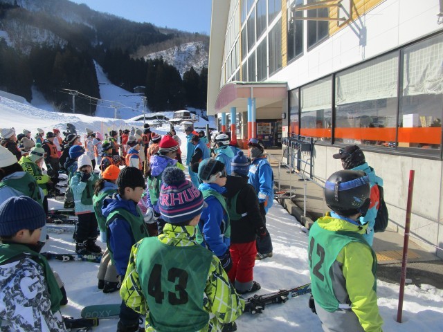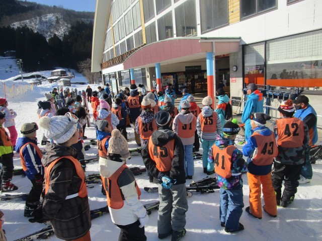 立山山麗スキー場に到着すると、すぐにスキー用の靴に履き替えて開講式を行いました。