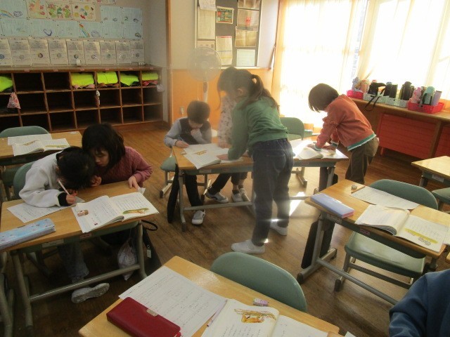 ライオンとシマウマの赤ちゃんの生まれたばかりのときの大きさや体の様子等を教科書から読み取り、まとめました。友達と教え合いながら進め、全員がしっかりと読み取ることができました。