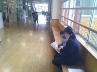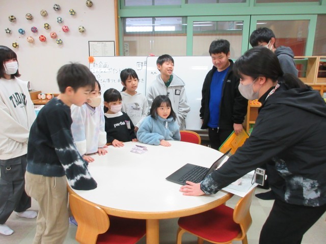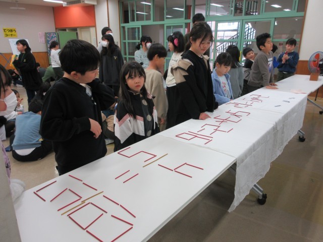 今日は、学校のいたる場所に設置された問題に縦割り班で挑戦するオリエンテーリングを行いました。班で協力して考えを出し合いました。