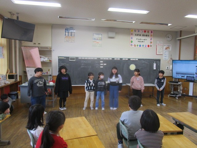 2月18日に年長さんが小学校へやってきます。1年生は、年長さんに小学校の楽しさを知ってほしい、入学を楽しみにしてほしいという思いをもって交流会の準備を進めています。自分たちが小学校でがんばってきたことを発表します。音読や8の字とび、けんハなどの発表を通して、年長さんに喜んでもらい、自分たちの成長した姿を見せようとはりきって活動しています。