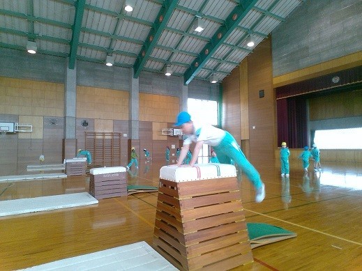 体育では、跳び箱の学習をしています。最初は跳び箱が苦手だった子供も、何度も挑戦してできる技を増やそうとがんばっています。「初めて〇段跳べたよ」とうれしそうに話す子供がたくさんいました。