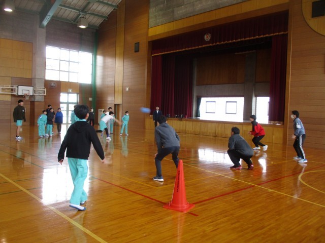 卒業前の思い出作りとして、先生や職員と6年生でドッジボール対決を行いました。1年生から5年生も応援に来て、とても盛り上がりました。