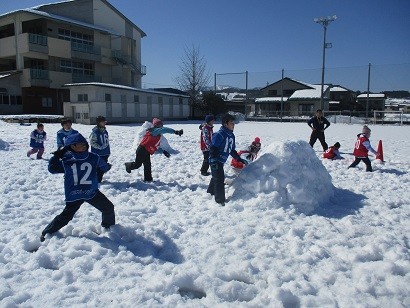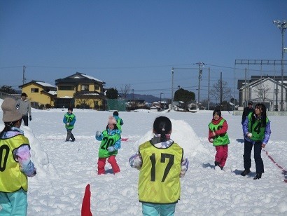 かがやき教室では、正式なルールでの雪合戦を行いました。子供たちは、相手の陣地にある旗を目指して素早く攻めたり、相手に雪玉を当て旗を守ったりしました。チームで作戦を立て、協力しながら楽しく活動することができました。