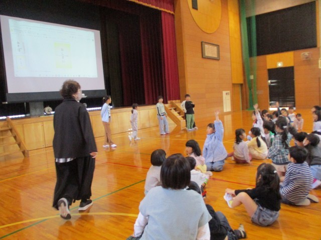 「ひともじえほん」を読みながら、体を動かして楽しみました。