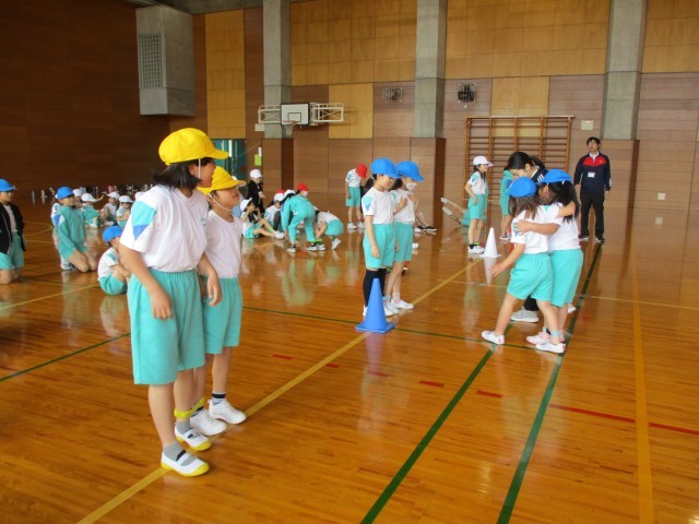 個人競技で新しく加わった二人三脚を練習しました。パートナーのことを気遣い、楽しい雰囲気で練習できました。