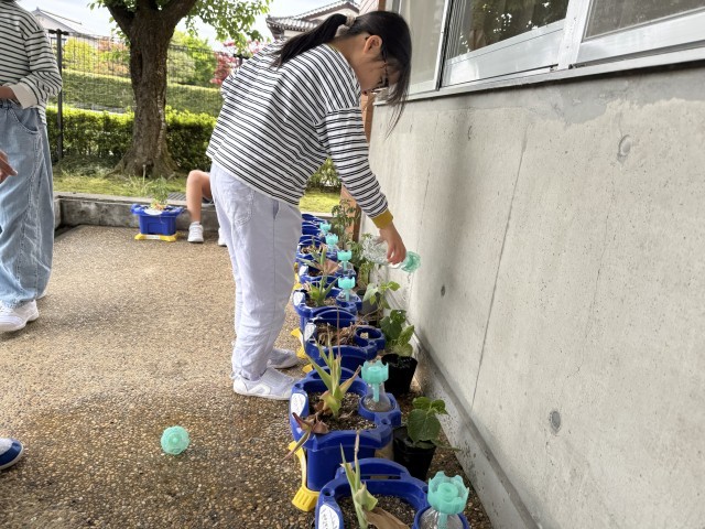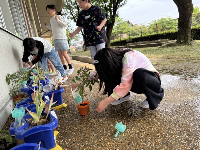 【5月9日】2年生 野菜の苗に水やり
