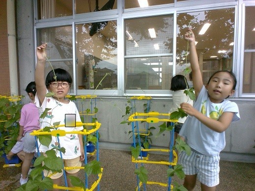 【6月26日】1年生 あさがおのつるが のびたよ