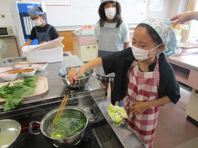 2回目の調理実習でした。今回はほうれん草のおひたしとこふきいもを作りました。班のみんなと協力して作ることができました。