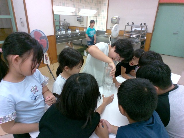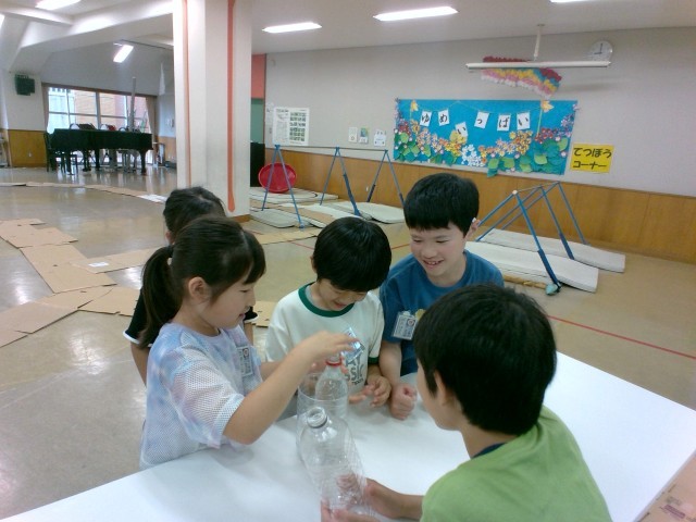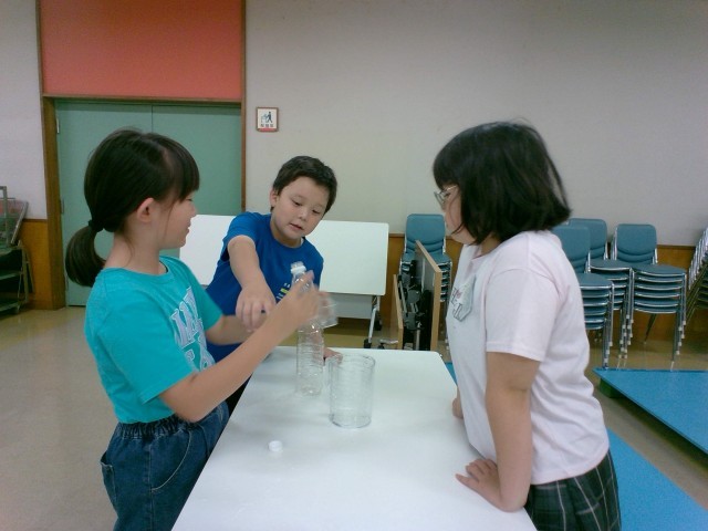 家から持ってきたペットボトルに入る水のかさを調べました。