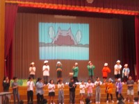 桃太郎を英語で演じました。アリーナ全体へ響く、はっきりとした発音でした。ダンスも...