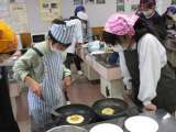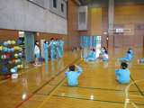 ホットケーキ作りの後は、体育館で団対抗の「しっぽ取り」や「ビーチバレー」、「ド...