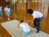 富山市から4名のスポーツ指導員が来てくださり、前転と後転ができるようになるヒン...