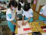 今日の外国語科の学習では、それぞれの国の有名な食べ物や建物等を調べて、いろいろ...