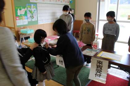 高学年が受付で迎えてくれました。