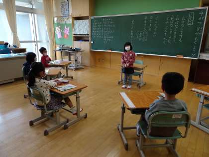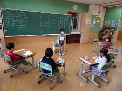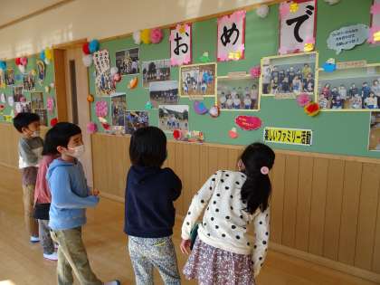 学校の中の様子を見学したり、お友達の自己紹介を聞いたりしました。