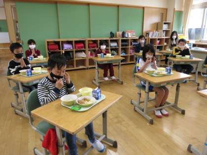 みんなお腹がすきました。感謝の気持ちをもっていただきましょう。